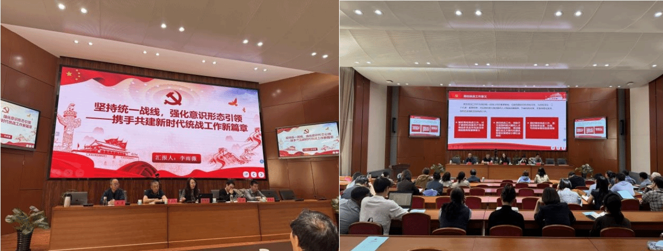 李雨薇书记从统一战线与高等教育的关系、意识形态领域的专题学习、高校网络意识形态领域的专题学习三个方面全面阐释和系统讲解,为学院统战系统干部职工加强意识形态安全,坚守意识形态阵地提供强有力的理论指导。