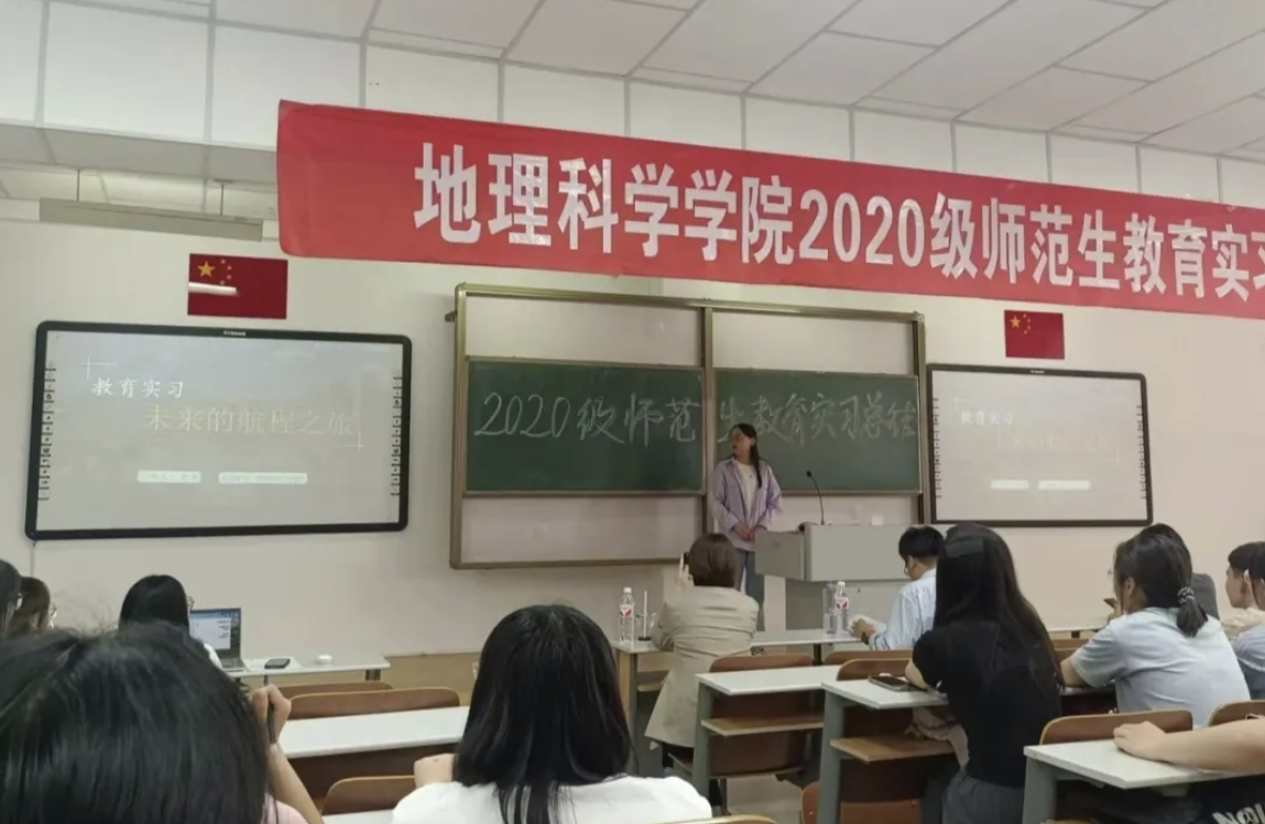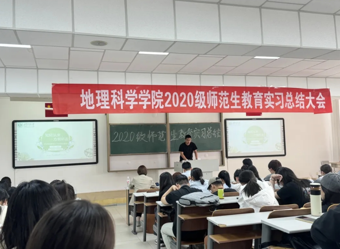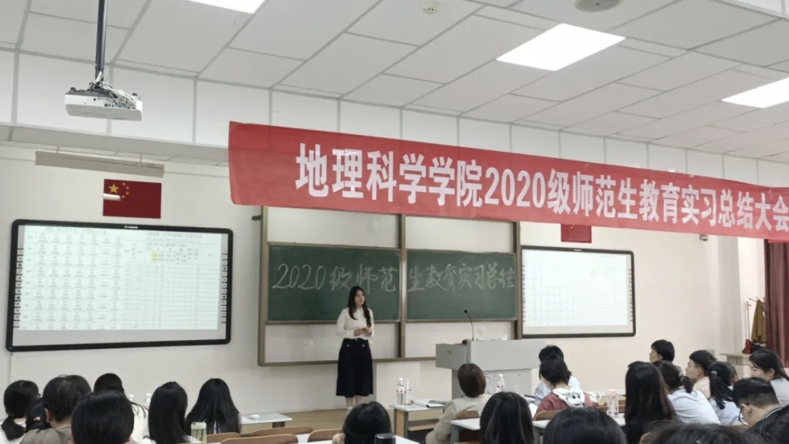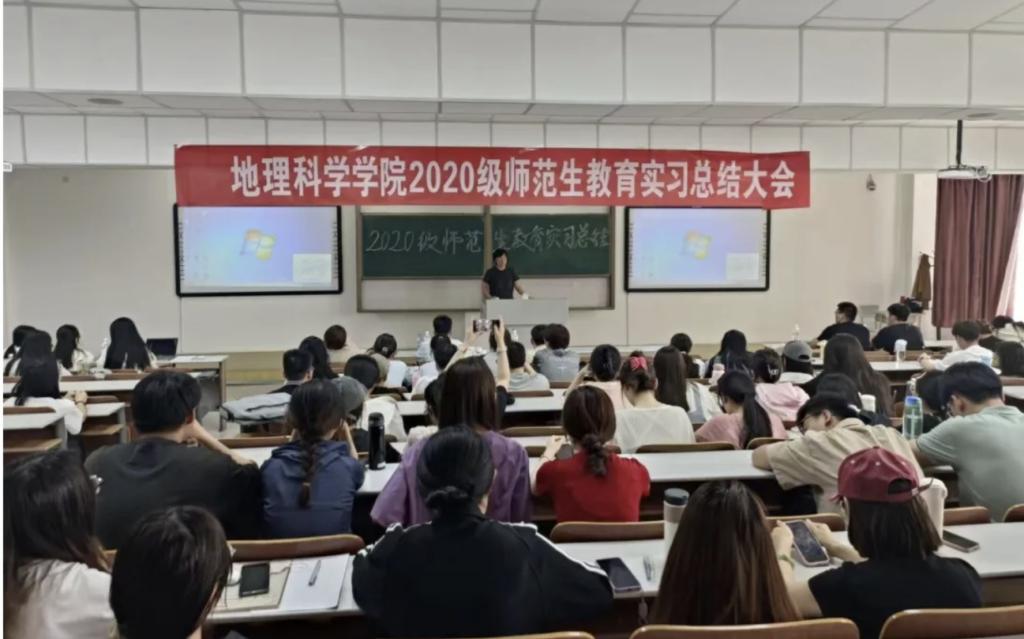 5月16日下午15:00,beat365唯一官方网站举办了2020级师范生教育实习总结大会。出席本次活动的有2021级地理科学汉班全体学生、地理科学系主任阿荣老师、副主任郭恩亮老师。由赵伟老师担任本次活动的主持人,师生共计158人。此外,活动邀请到2020级七位优秀且经验丰富的学姐学长,分享他们在教育实习中的见闻、感悟。