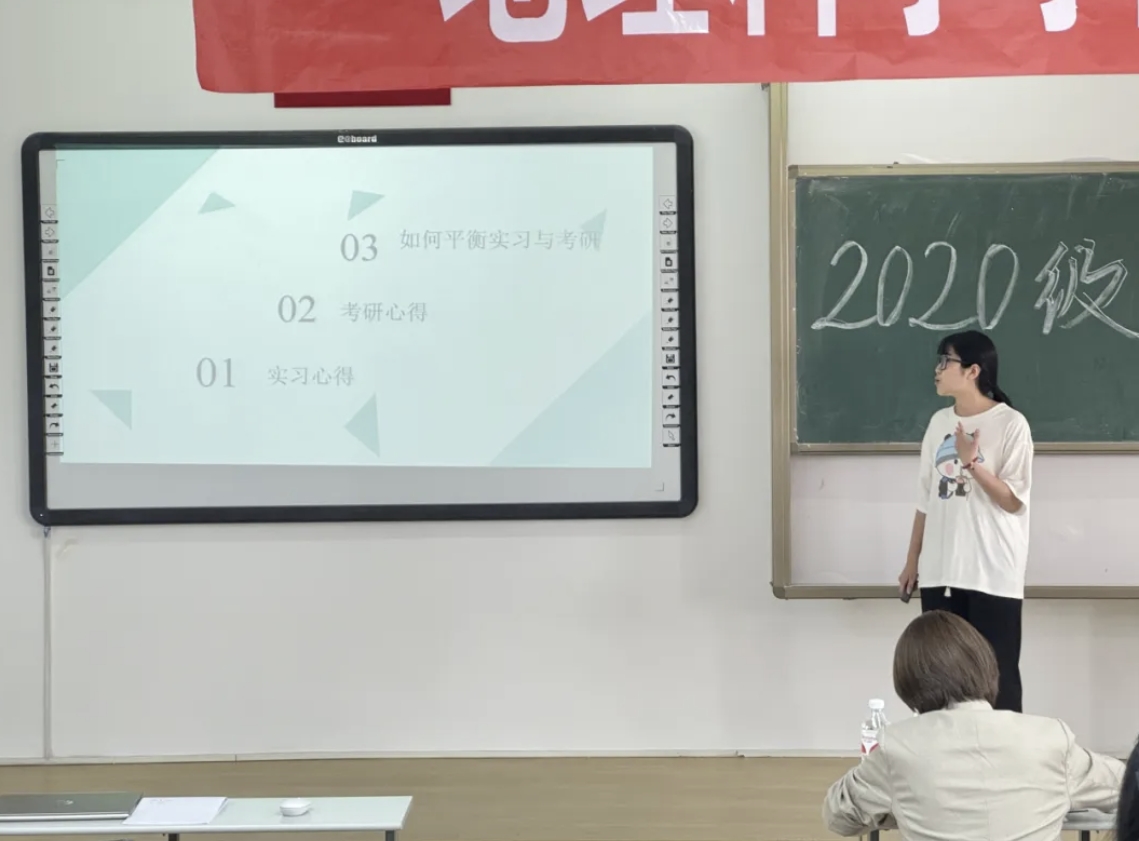 孙晓宇同学介绍了实习校园的环境,强调了从“学生”到“教师”的身份转变。分享了教学过程中的趣事。鼓励同学们要对地理教育保持热爱,将热爱转化为对学生的关心和呵护。同样,也要通过思考如何激发学生的兴趣,打造有趣的课堂氛围。