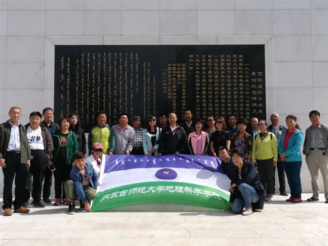 在达茂旗博物馆、百灵庙抗日武装暴动纪念碑前,全体党员和教工认识了“百灵庙暴动”这一重大历史事件。1936年2月21日,百灵庙蒙政会保安队千余名爱国官兵,在中共西蒙工委书记乌兰夫的领导下,打响了内蒙古抗日武装暴动的第一枪,彻底粉碎了日本侵略者推行的“征服中国必先征服满蒙”的罪恶阴谋。抗日武装暴动骑兵群雕纪念碑就是为纪念此次事件在1989年兴建的,2011年被列为自治区爱国主义教育基地,全体党员和教师在纪念碑前合影留念。