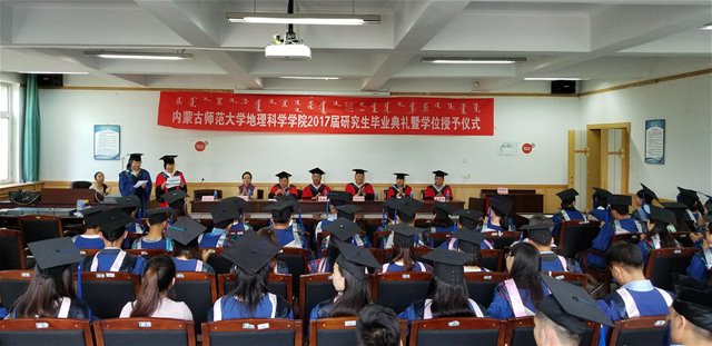 2017年6月29日下午三点,beat365官网在文史楼一号会议室举行2017届研究生毕业典礼暨学位授予仪式,由党总支副书记(主持工作)、副院长张裕凤教授主持仪式,参加学位授予仪式的还有校党委副书记、纪委书记高云峰研究员,beat365唯一官方网站院长包玉海教授,副院长乌兰图雅教授,党委委员、党办主任布仁教授,beat365唯一官方网站教师发展与教学督导评估中心主任徐宝芳教授和人文地理硕士点负责人佟宝泉副教授。