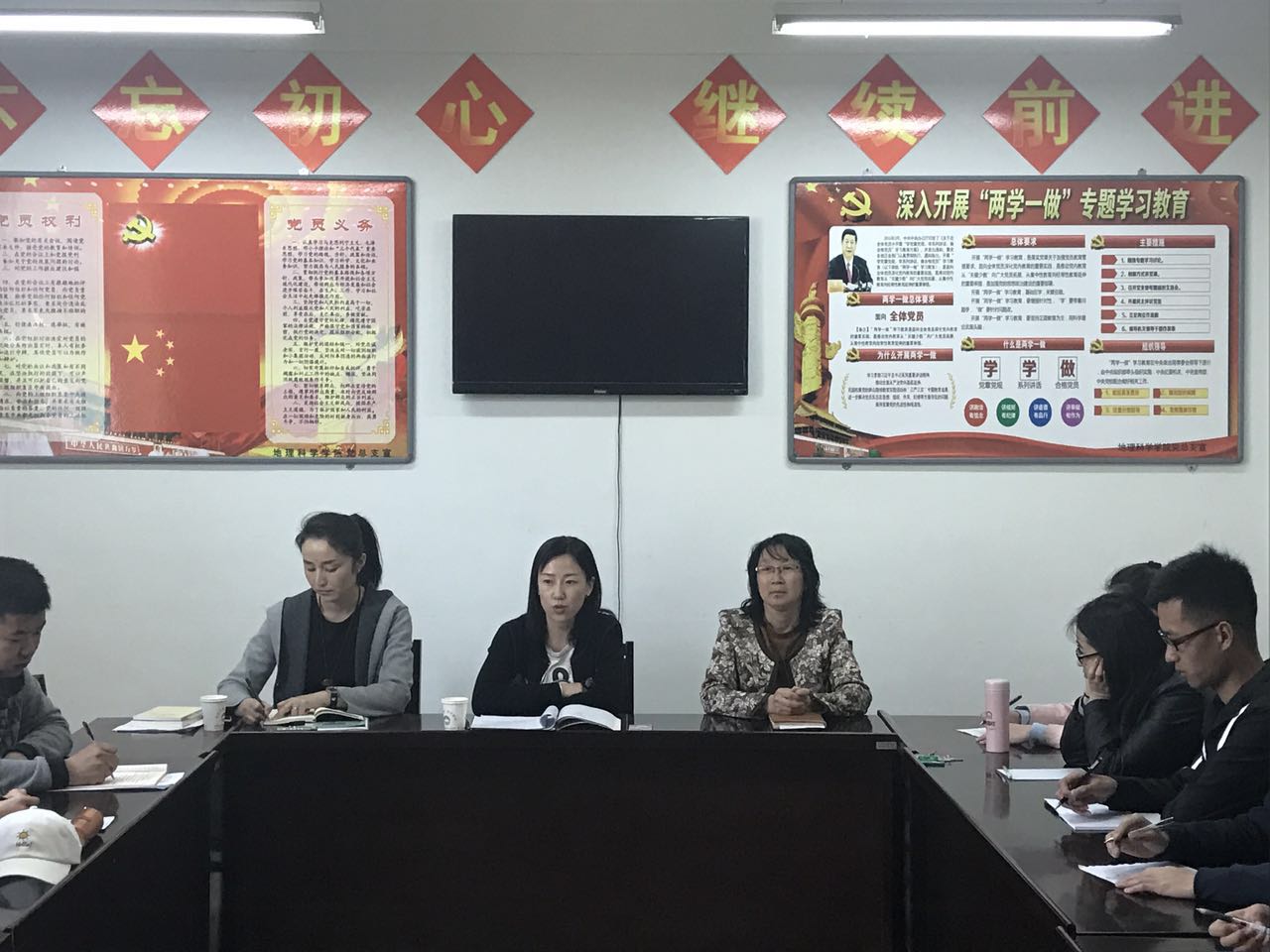 2017年5月5日下午2:30,研究生工作部与beat365唯一官方网站研究生党支部在盛乐校区地科院会议室开展“研究生党支部校、院共建活动”。参加此次会议的有beat365唯一官方网站党总支副书记(主持工作)、研究生党支部书记张裕凤老师、研工部副部长(主持工作)许琳老师、研工部党建与思政办公室楠玎老师和地科院研一所有党员和积极分子。
