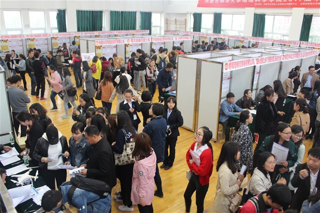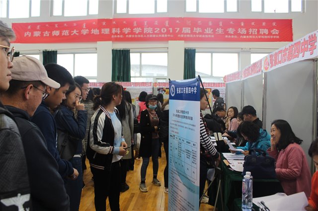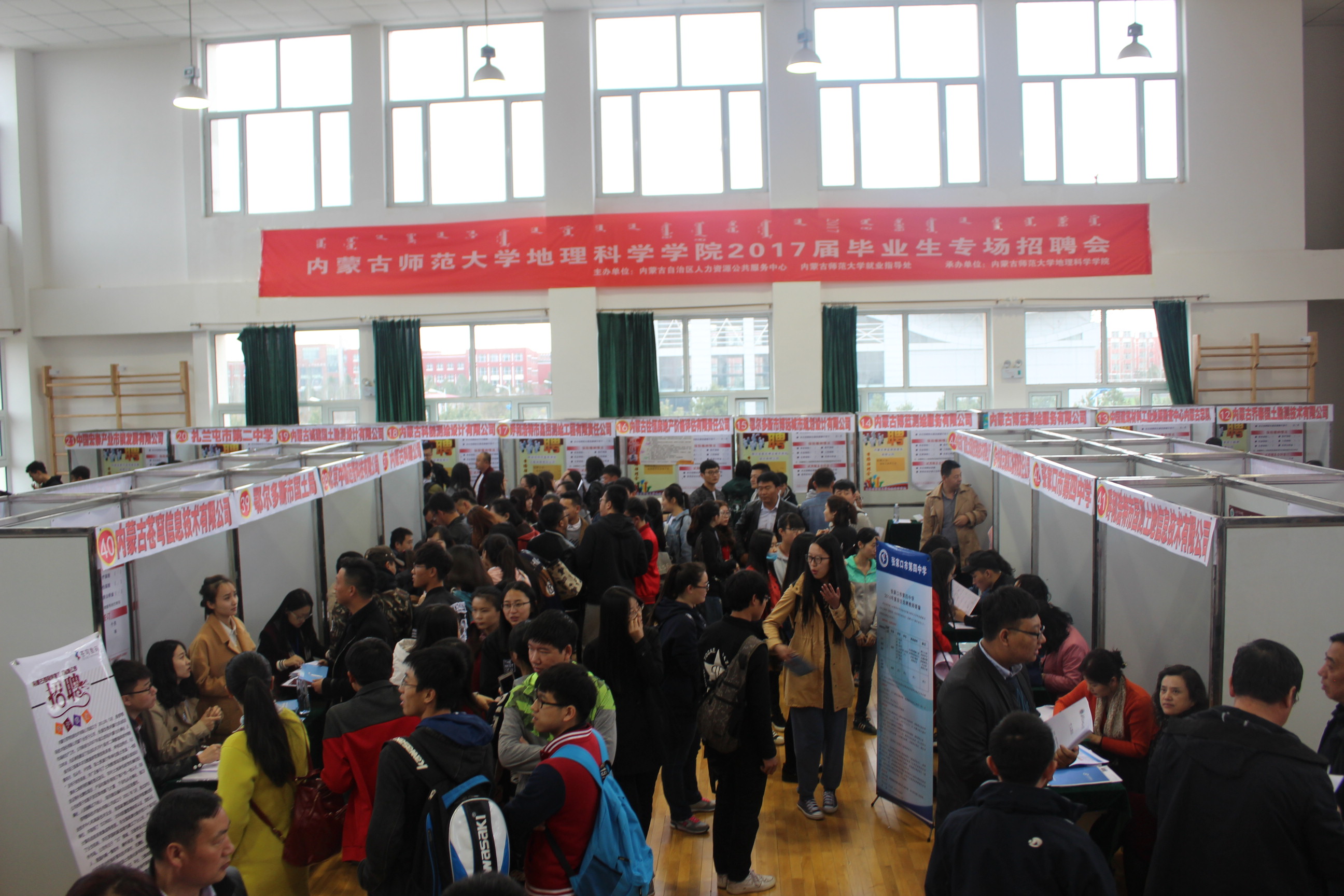 在就业形势越来越严谨的当下,为全面推动就业信息的整合和共享,给毕业生提供优质专业的交流平台,真正抓实地理学科专业的毕业生就业问题,由内蒙古自治区人力资源公共服务中心、beat365唯一官方网站就业指导处主办,beat365唯一官方网站承办的“beat365唯一官方网站2017届毕业生专场招聘会” 于2017年4月9日上午9点至11点在盛乐校区体育馆南侧武学馆二楼成功举办。