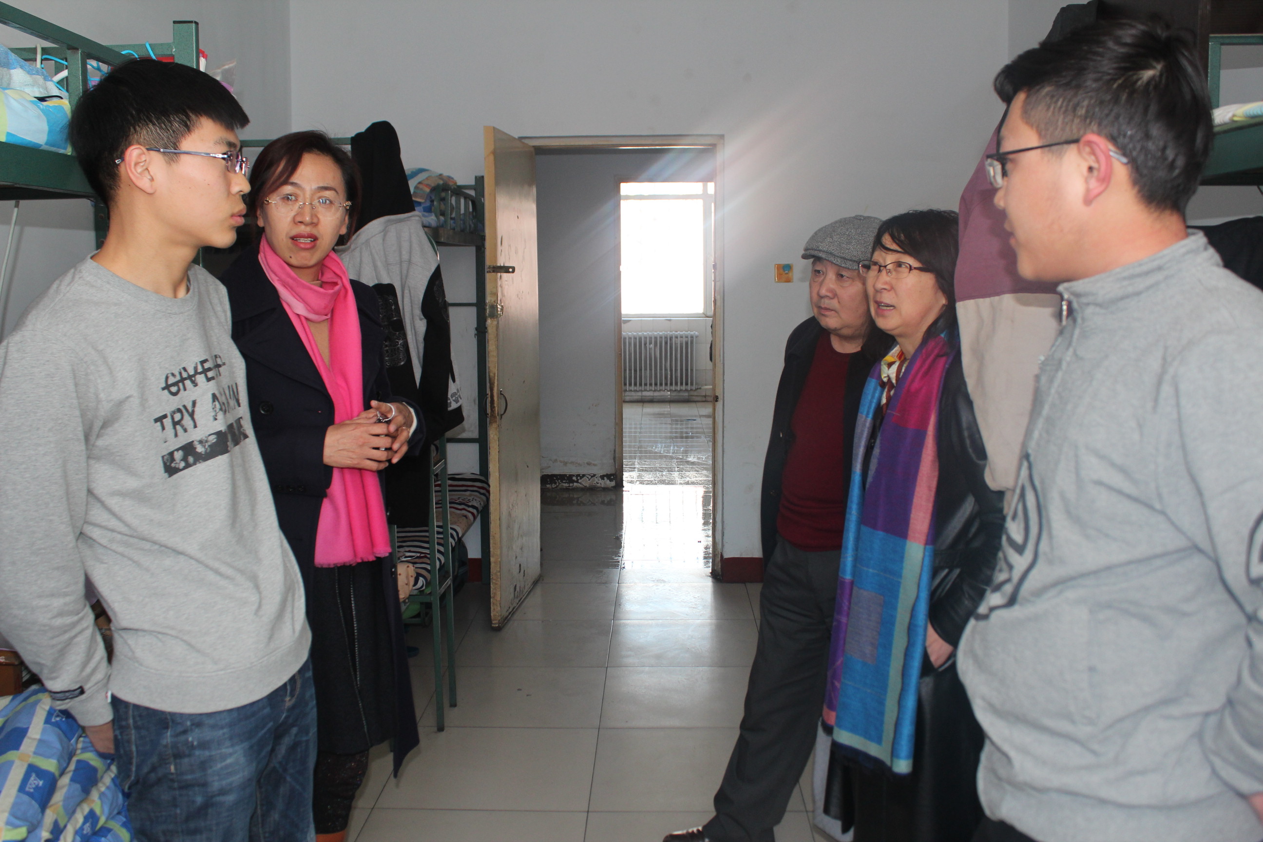 新学期伊始,为加强综合治理工作,提高安全防范意识,提升学生宿舍文明,把握学生返校后的思想动态,2017年3月1日下午,beat365唯一官方网站院长包玉海教授,党总支副书记(主持工作)、副院长张裕凤教授,党总支副书记李雨薇老师深入到beat365官网学生宿舍,对学生进行慰问,并对宿舍安全进行检查。