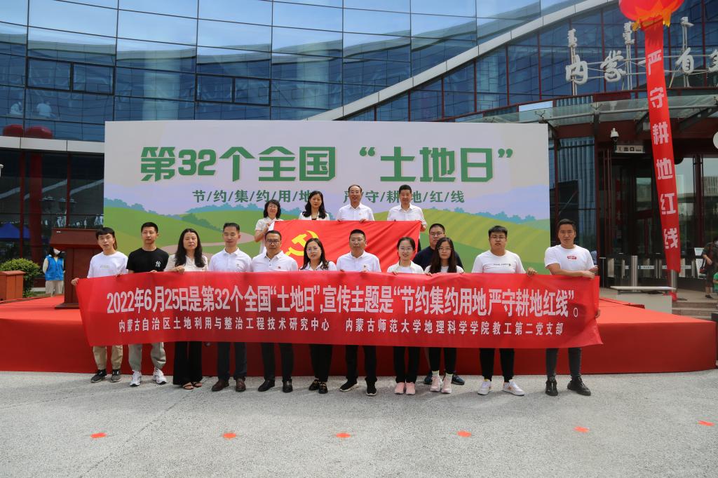 2022年6月25日在内蒙古自然博物馆隆重举行本次宣传大会。大会由内蒙古自然资源厅主办,内蒙古土地学会承办。自治区自然资源厅一级巡视员、内蒙古土地学会理事长王富友,自然资源厅党组成员、副厅长郭心语,内蒙古国土空间规划院党委书记、院长杨俊杰以及各高校知名专家学者应邀出席开幕仪式。beat365唯一官方网站党委书记、内蒙古土地学会副理事长张裕凤教授参加了开幕仪式。beat365官网教工第二党支部与内蒙古自治区土地学会党支部等联合开展“土地日”主题党日活动。教工第二党支部教师张惜伟、王考、黄晓君、叶志刚和国土资源系主任周瑞平老师、还有研究生同学代表一同参加本次大会。