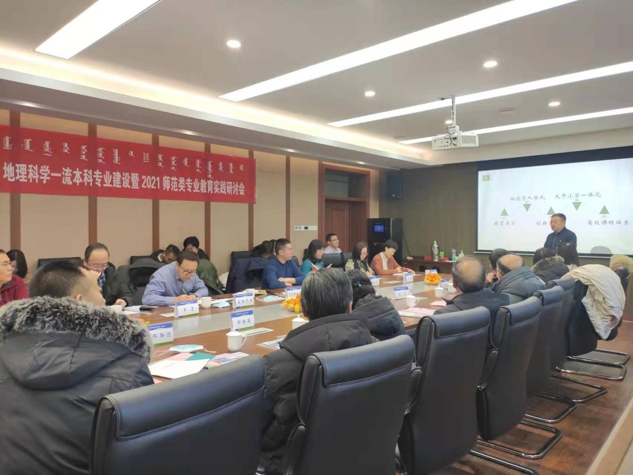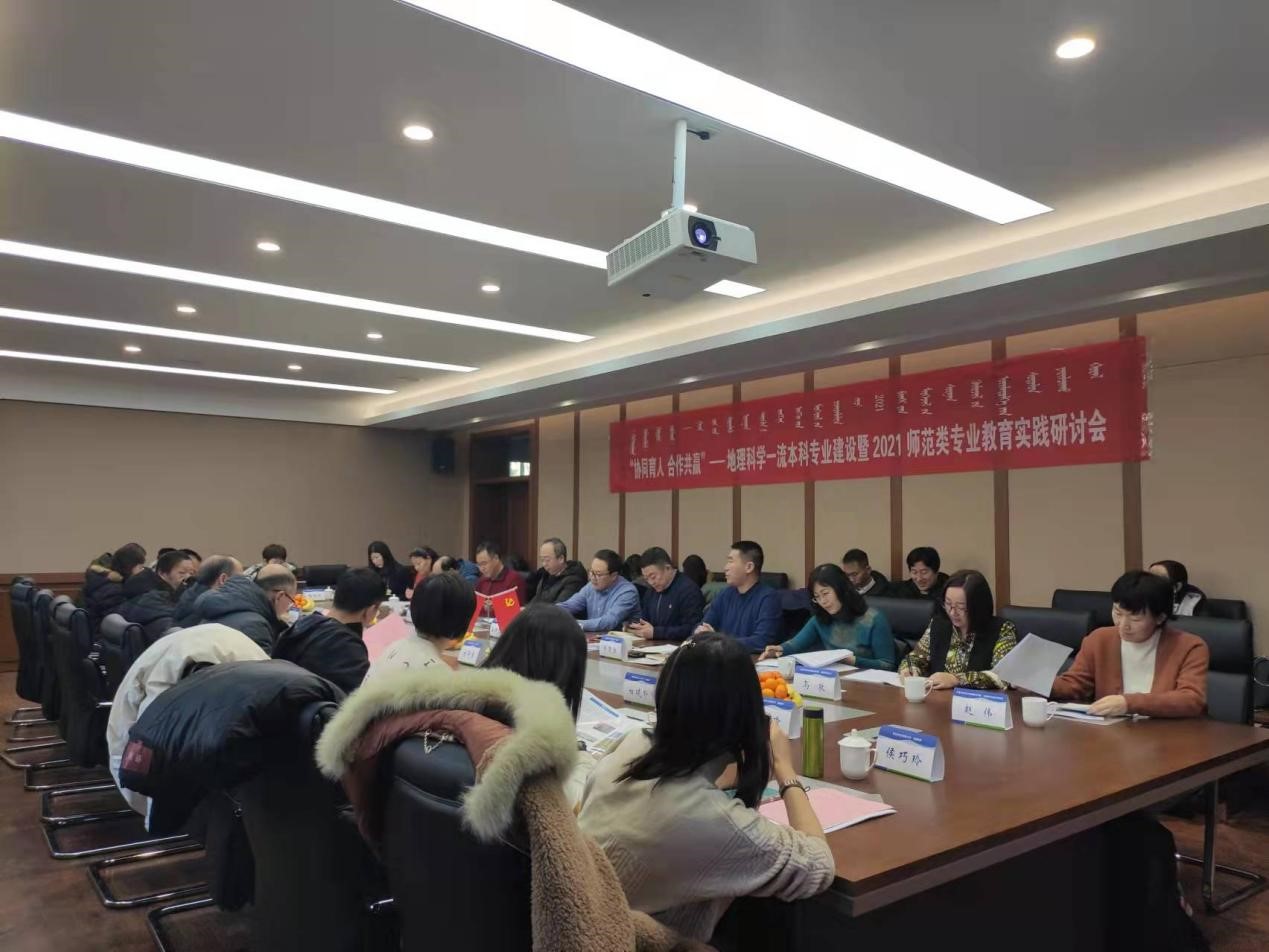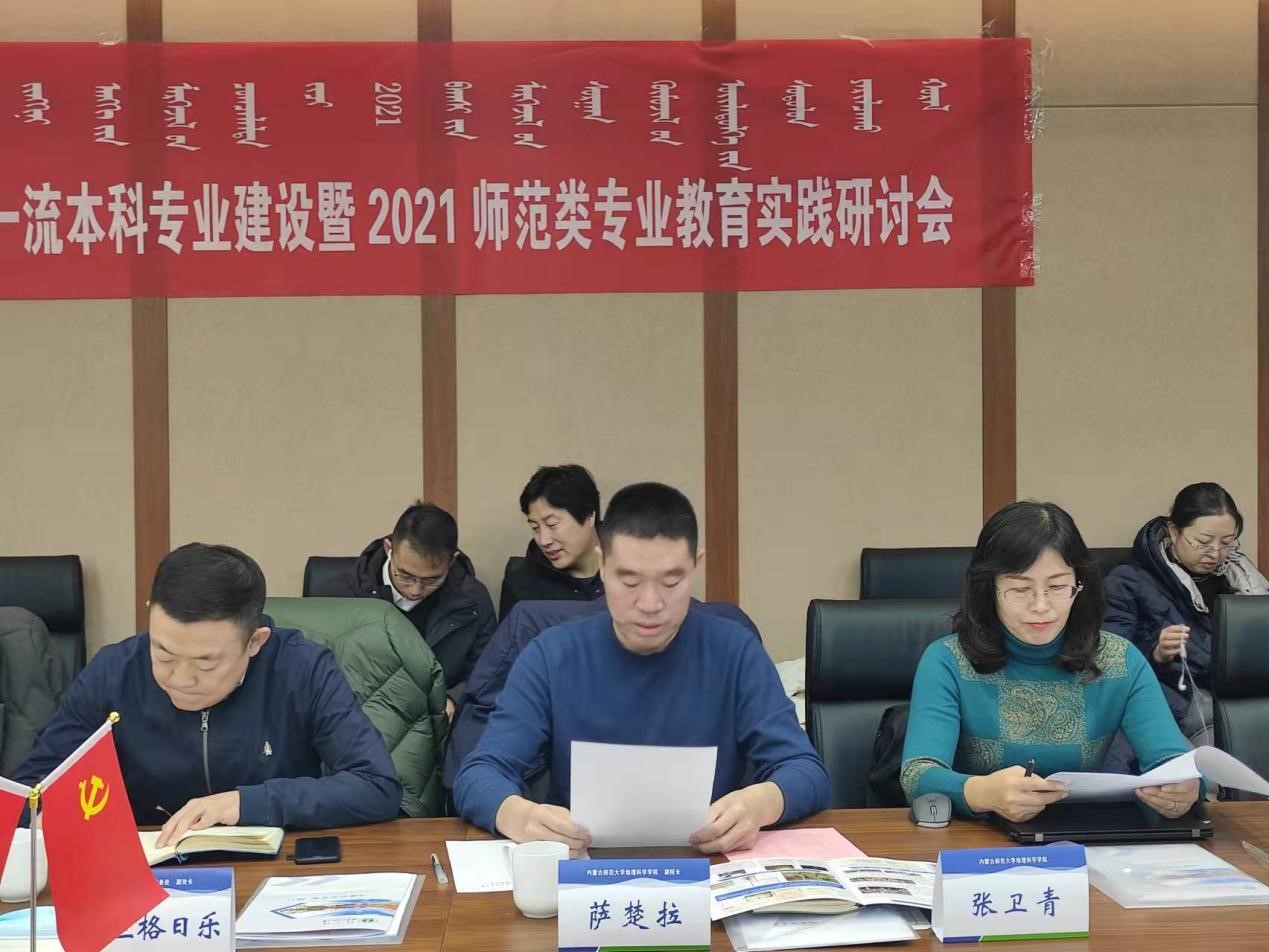 为进一步贯彻落实党的十九大精神,培养高素质教师队伍,提高师范类专业人才培养质量,按照国家教育事业发展“十四五”规划工作要求,根据教育部印发《普通高等学校师范类专业认证实施办法(暂行)》等文件精神,2021年12月30日,beat365唯一官方网站教工第一党支部在赛罕校区文史楼2号会议室召开了“协同育人 合作共赢”——地理科学一流本科专业建设暨2021师范类专业教育实践研讨会。会议由地科院教工第一党支部萨楚拉副院长主持,教务处副处长乌兰格日乐、教师发展与教学评估中心孟根巴根教授,呼和浩特市部分中学的领导和教师代表,教工第一党支部书记乌敦和党员老师、师范认证工作组成员参加了本次会议。
