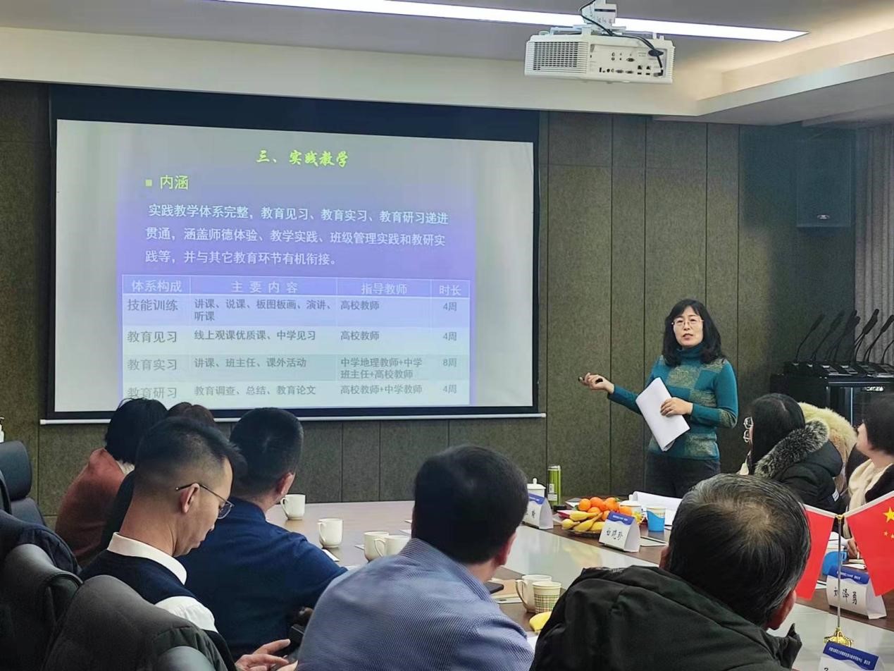 beat365唯一官方网站与会领导为远道而来的中学领导和教师代表颁发了beat365唯一官方网站教育实践指导教师聘书。教工第一党支部书记、地理科学系主任乌敦老师主持进行了2020版人才培养方案征求意见工作,张卫青教授作了题为《地理科学专业教育实践体系的构建》的报告。与会的各中学领导和老师们与beat365唯一官方网站相关领导和老师热情交谈,为地理科学一流本科专业建设积极建言献策。萨楚拉副院长作总结发言。