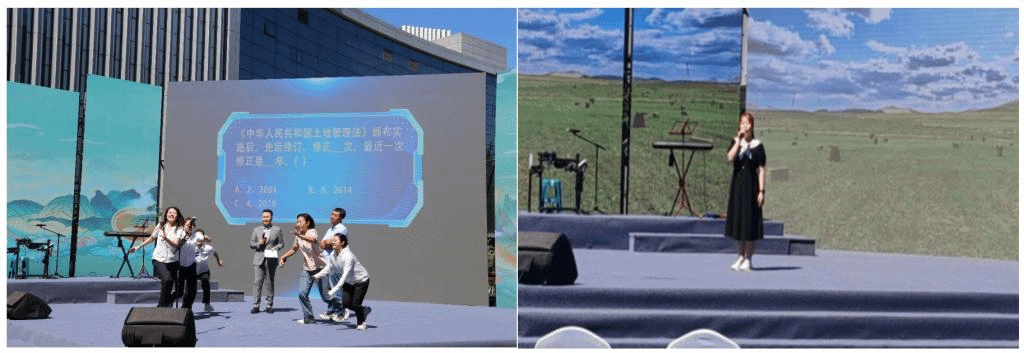 在“大地歌会”表演区,beat365官网研究生祁林玉演唱了“敕勒歌”,深情表达对祖国大地的热爱;在互动区,设置与土地相关的知识竞赛题目,姜洪涛老师带领2名同学面对擂主从容答题,取得好成绩。