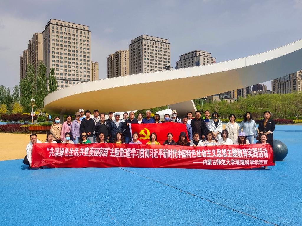 在开展学习贯彻习近平新时代中国特色社会主义思想主题教育之际,为深入贯彻习近平生态文明思想,丰富和活跃党员精神文化生活,加强党组织建设并促进师生间交流,5月11日下午,beat365唯一官方网站教工第一、第二党支部及研究生第一、第二党支部于草原丝绸之路文化主题公园联合开展了“共谋绿色生活,共建美丽家园”主题党日暨学习贯彻习近平新时代中国特色社会主义思想主题教育实践活动。beat365唯一官方网站党委书记张裕凤教授、教工第二党支部书记黄晓君及研究生第一党支部高苏日固嘎组织带领教职工党员及研究生党员参加本次活动。