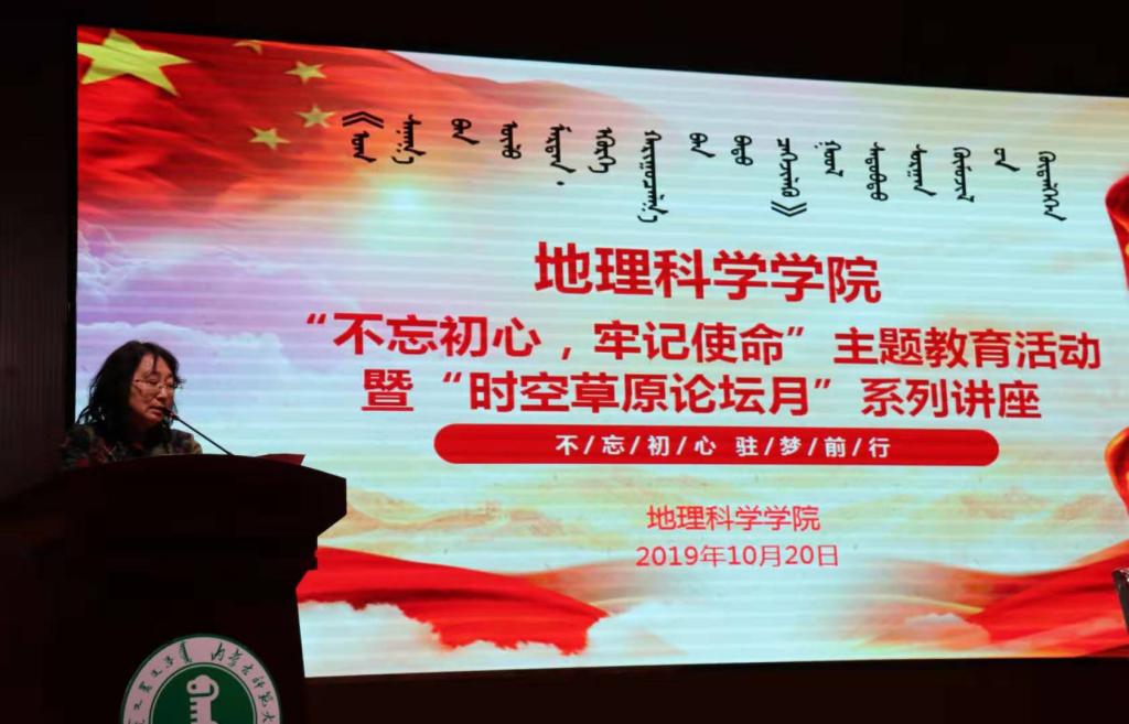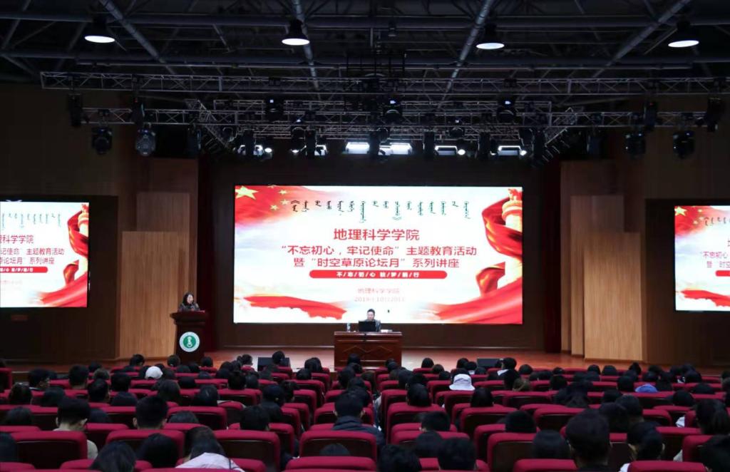 2019年10月20日上午,beat365官网“不忘初心,牢记使命”主题教育活动暨“时空草原论坛”宣传月系列讲座在beat365唯一官方网站盛乐校区图书馆二楼报告厅成功举行。会议由beat365唯一官方网站党委书记张裕凤教授主持,邀请beat365官网优秀校友、东北师范大学beat365唯一官方网站副教授郭蒙(系beat365官网2002级土地资源管理专业优秀学生)做题为《基于遥感数据的林火CO2排放量估算,基于用电量数据的农村宅基地闲置研究》的专题讲座。beat365官网研究生、本科生共计四百余人参加了本次讲座。