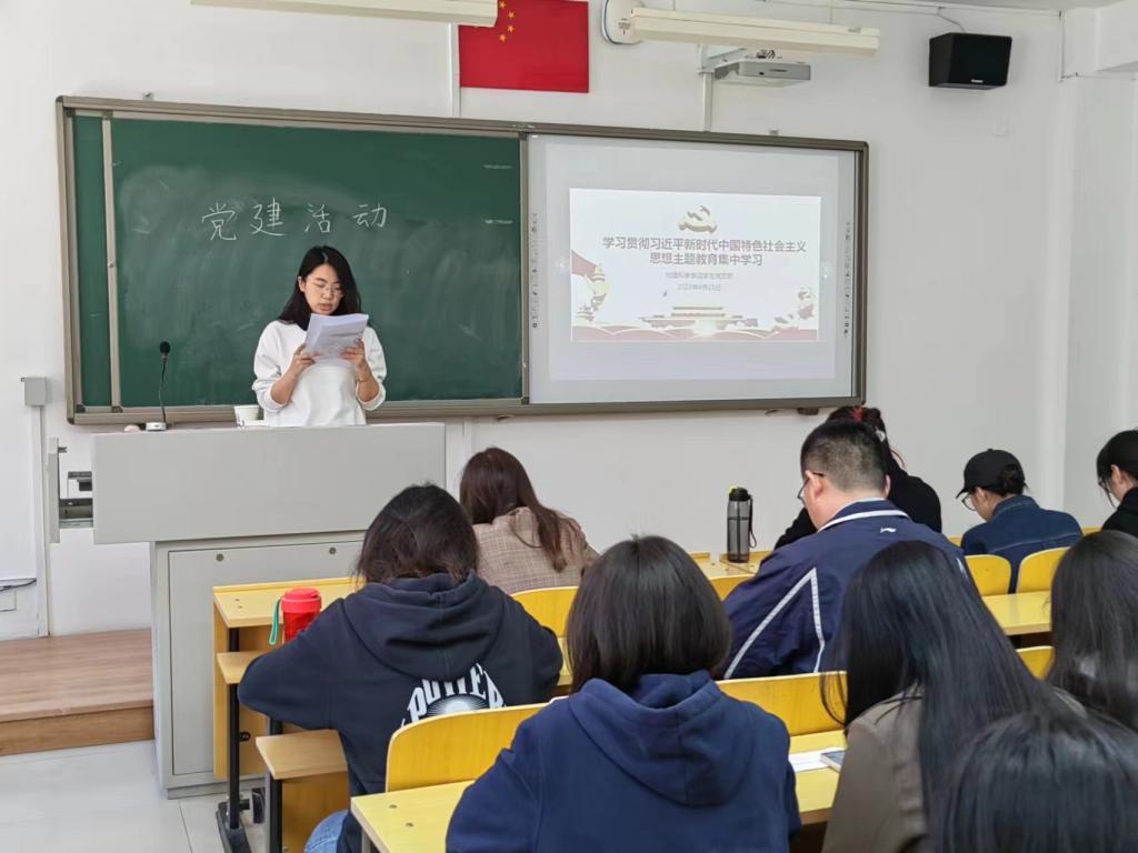 2023年4月25日下午15:00,beat365官网学生党支部在行知楼114举行学习贯彻习近平新时代中国特色社会主义思想主题教育集中学习,集中学习由学生党支部书记孙小雅领学,学生党支部全体成员以线上线下形式参加学习。
